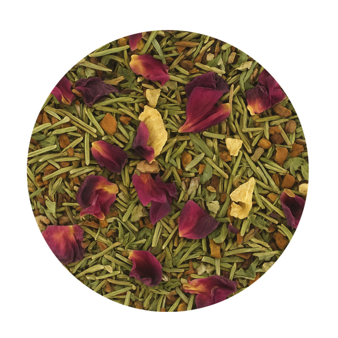 Enrichie de sauge apaisante et de pétales de rose délicats, cette infusion se pare d’une touche florale, sublimée par un soupçon d’arôme de bergamote, qui enveloppe chaque tasse d’une aura précieuse et raffinée.