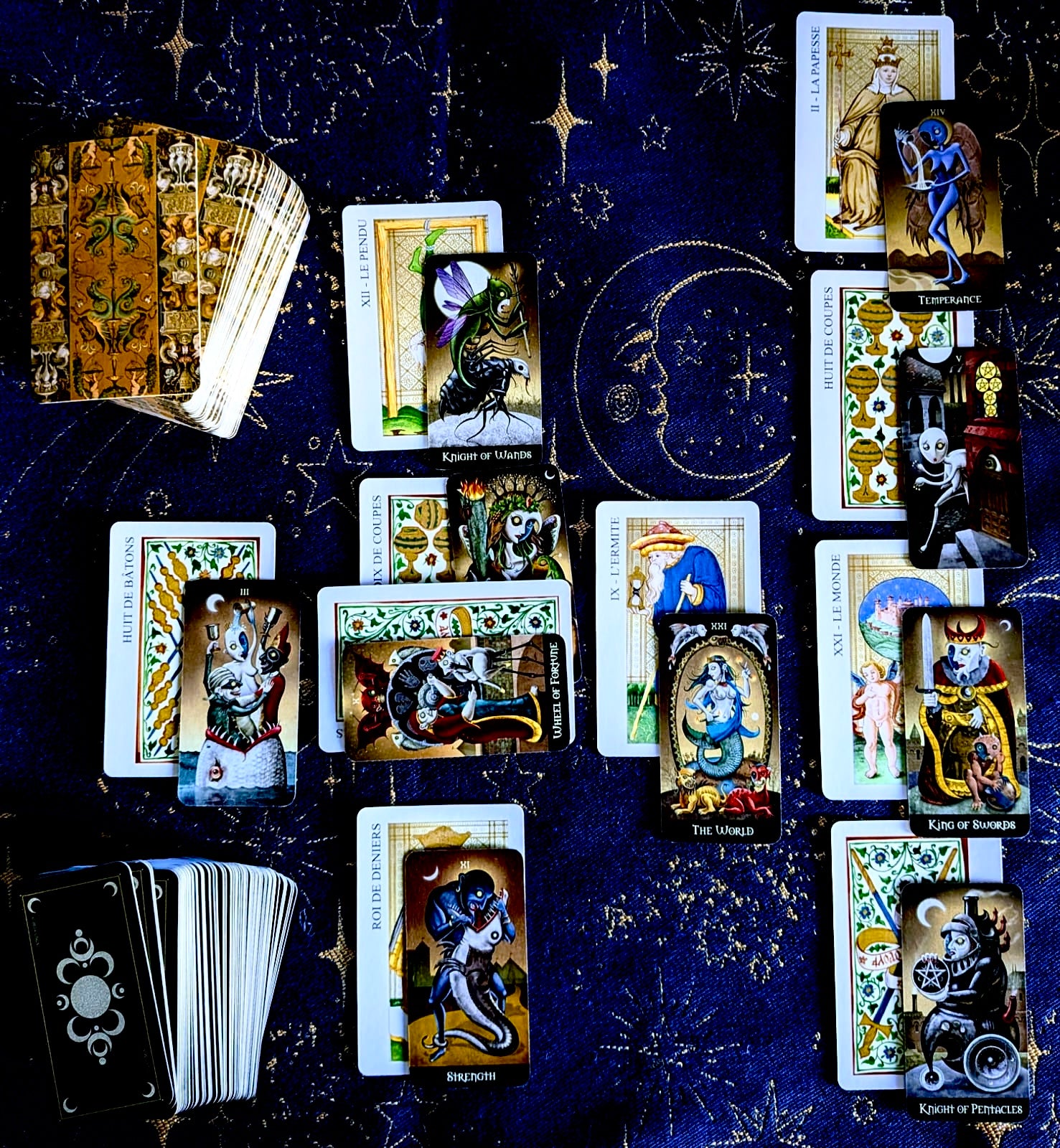 Cette région, connue pour ses légendes et la mer, abrite des lieux mythiques tels que : la forêt de Brocéliande, la demeure de Merlin l’Enchanteur, de Viviane et de la fée Morgane. Ces récits séculaires nourrissent depuis toujours la fascination pour l’invisible, la divination et les forces subtiles de la nature, autant de thèmes s’alliant à l’univers du tarot.
