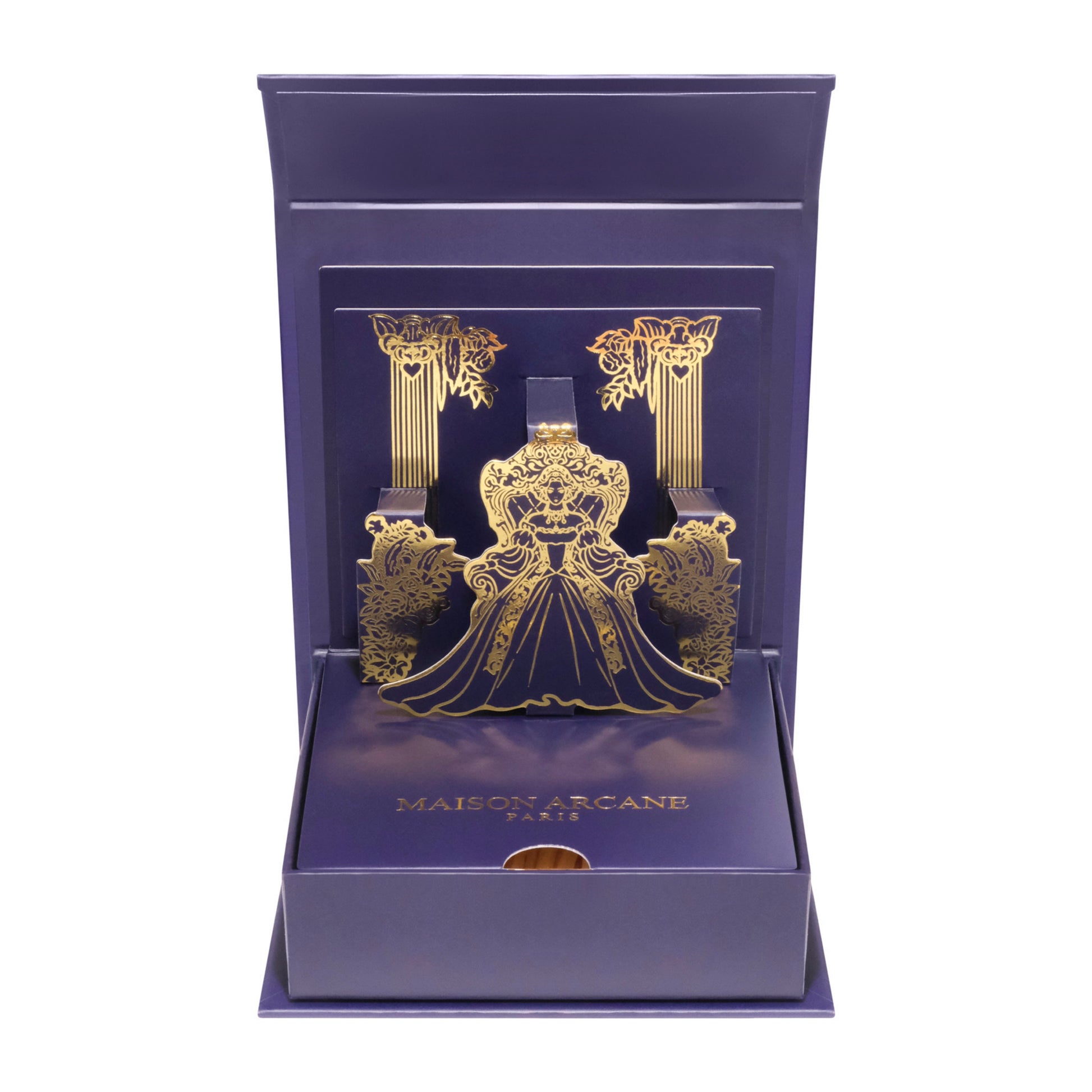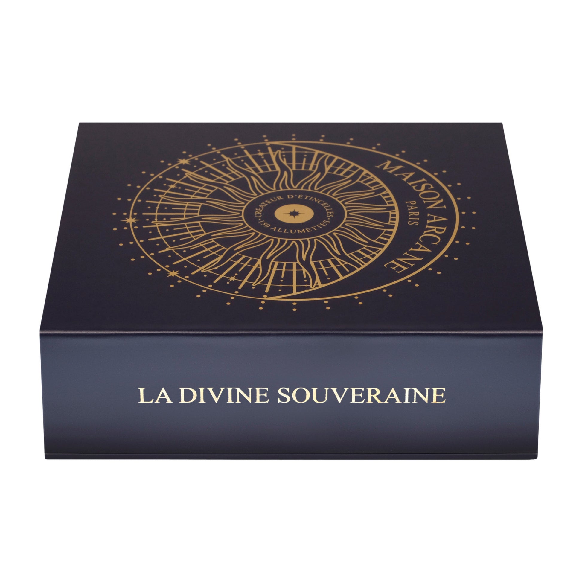 Upon opening the Divine Sovereign box set, a three-dimensional setting unfolds. Like a miniature theater, it reveals the story of the Empress—a figure of beauty and wisdom—coming to life through a play of striking reliefs and perspectives.